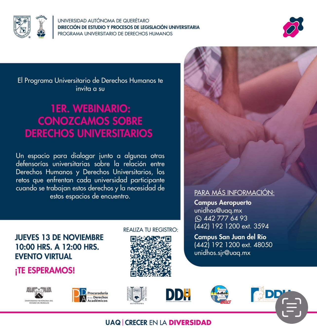 La Universidad Autónoma de Querétaro, a través del Programa Universitario de Derechos Humanos, llevó a cabo un espacio de diálogo e intercambio con defensorías universitarias.