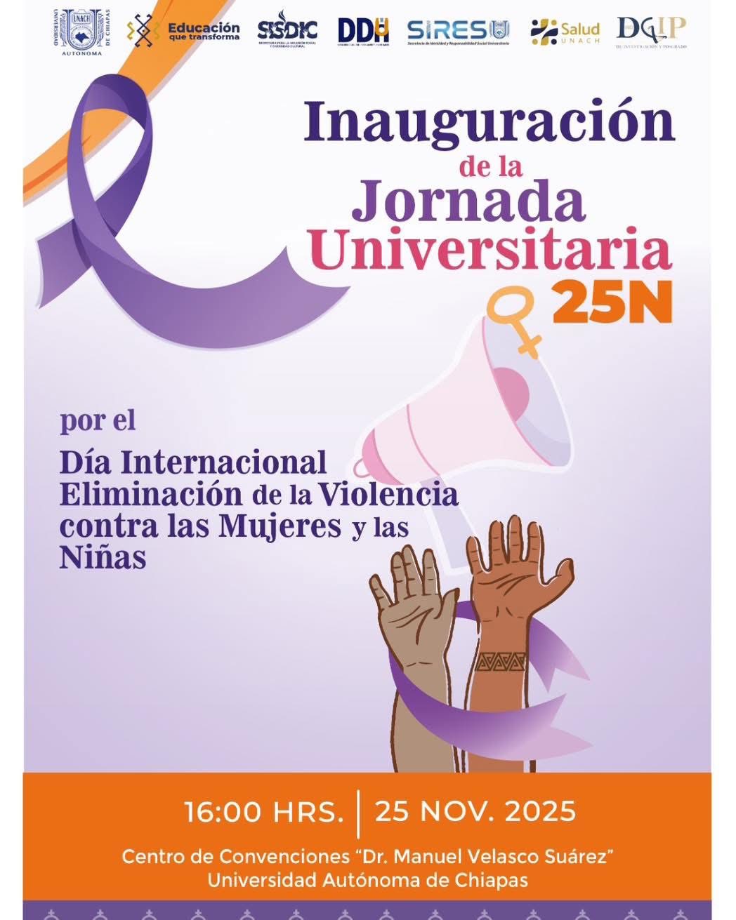 La Benemérita Universidad Autónoma de Chiapas llevó a cabo la “Jornada Universitaria 25N”, en el marco del Día Internacional de la Eliminación de la Violencia contra las Mujeres y las Niñas.